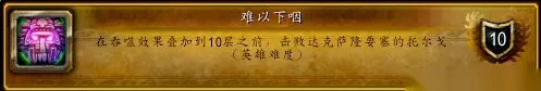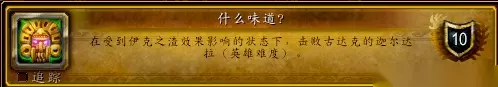 4.什么味道?成就做法:古达克隐藏BOSS在战斗中会给玩家喷吐一个BUFF,只要带着这个BUFF打完副本即可完成。 注意事项:不要开冰箱、无敌、斗篷,这些技能是可以解除掉这个BUFF的,在BOSS战斗中站到BOSS脸上去,让他喷你。