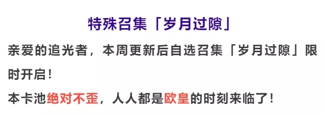 • 「岁月过隙」属于自选召集,与其他类型召集的保底相互独立计算,互不影响。