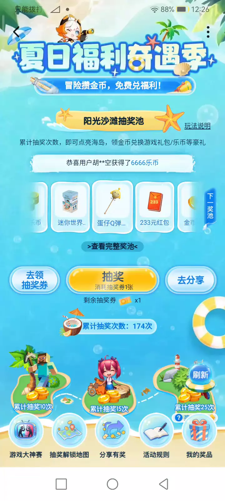第一次抽到。