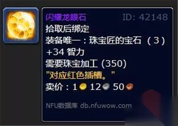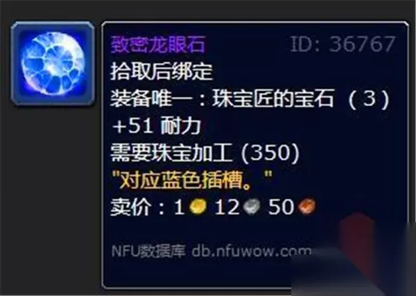 解析:闪耀龙眼石是法系职业的首选宝石。法术强度的提升能显著增强技能输出,而智力则提升法力值和法术强度,对于法师、术士等依赖法术输出的角色来说,都是非常重要的属性。 3.致密龙眼石 属性: +51耐力(适用于蓝色插孔)