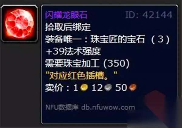 解析:圆润龙眼石是一种非常灵活的宝石,可以根据职业需求进行选择。对于追求输出的职业,暴击属性能提高攻击的伤害,而护甲穿透则适合面对高防御的敌人,确保你的攻击更具威胁。 2.闪耀龙眼石 属性: +39法术强度(适用于红色插孔)
