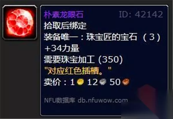 解析:致密龙眼石专注于提升角色的耐久性,非常适合坦克类职业。耐力的提升将直接增加生命值,增强生存能力,使角色在面对高强度的战斗时更加坚韧。 4.朴素龙眼石 属性: +34力量(适用于红色插孔)