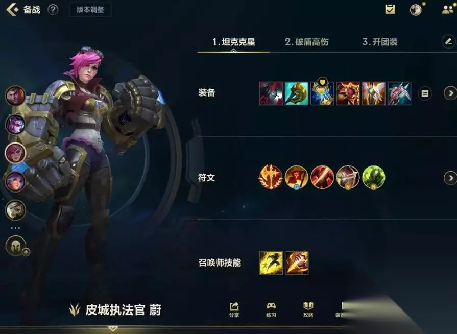 在符文的上,蔚的基石符文可以选择先攻,主系符文可以带残暴、巨人杀手和传说攻速。最后的副系符文可以带野蛮生长,野蛮生长可以提升为的生存能力,基石符文和主系符文都可以提升蔚的伤害。由于蔚常见的都是打野路线,所以在技能上要选择带惩击和点燃。 在进入对局后,蔚一级可以先学三技能,三技能让它在攻击到敌人后拥有破甲效果,可以提升打野效率。开始先正常的红区buff开局,然后走地鸡,三只狼。在消灭蓝buff后,就可以前往蓝区河道攻击河道蟹。河道蟹可以给上路和中路激活了河道视野,要是这两条路的敌人走河道支援,队友也能通过小地图及时发现。 清完第一波野区蔚的等级已经来到四级半,如果上路敌人压的比较深而且敌人时残血的话,就可以给上路队友发信号,让他诱敌深入。我们再通过绕后包抄,蔚抓人先不要急着使用一技能,拉近距离后先用三技能破甲,二技能给自己套上护盾。如果敌人和我们消耗,就和队友配合集火。敌人直接逃窜在用一技能的超远距离蓄力追击,适当的留好自己一技能,可以在追击敌人时发挥重要作用。
