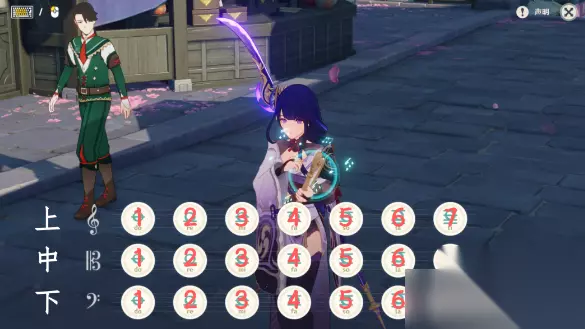 弹奏说明: 1、在游戏中演奏的时候,会有不同的音阶,音阶一共分为上下三种,高音、中音、低音; 2、手机版琴谱中,会将三种音阶分别用1234567来代替,其中有的高音会用+1、+2、+3..,低音是-1、-2、-3...; 3、而电脑版琴谱中,就是用字母来代替,玩家只要在键盘的26键中,找到对应的琴谱演奏即可; 4、有一些琴谱中,还会有括号的表示,括号的意思就是要一起按,有一些歌曲是需要两只手来演奏的哦; 5、玩家也可以将琴谱复刻到游戏中,自动编曲,之后就可以自动播放该歌曲了。