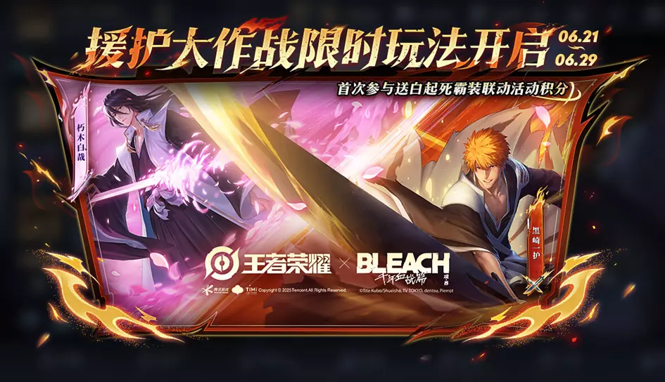 王者荣耀 x BLEACH 境·界 千年血战篇联动开启,免费得后羿、白起联动皮肤!