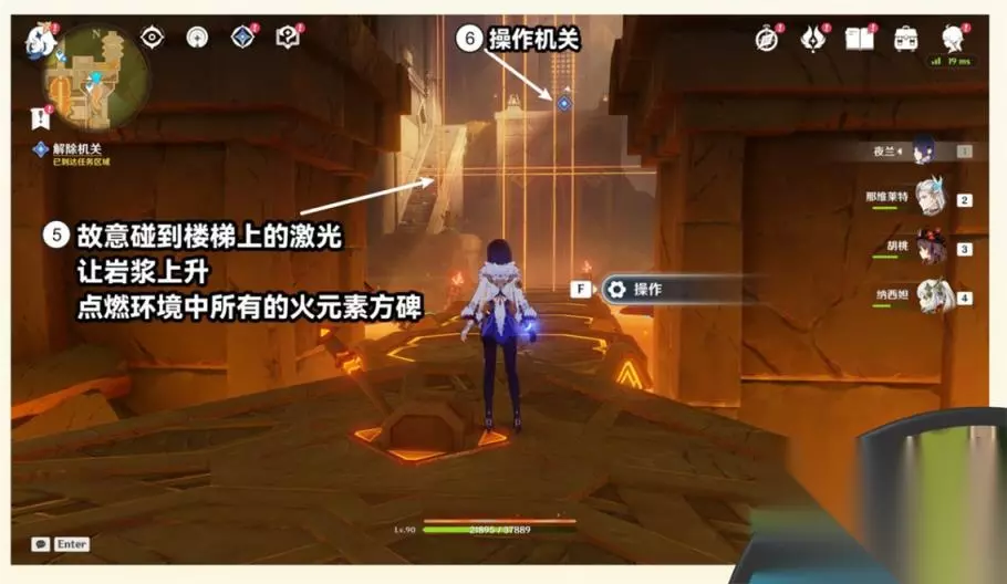 ⑤故意碰到楼梯上的激光,让岩浆上升,点燃环境中所有的火元素方碑