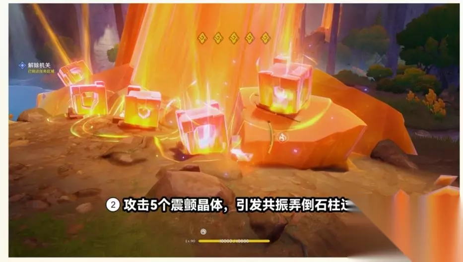 ②攻击5个震颤晶体,引发共振弄倒石柱过河