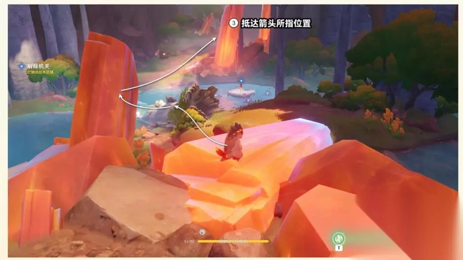 ④走到任务指引位置解除机关