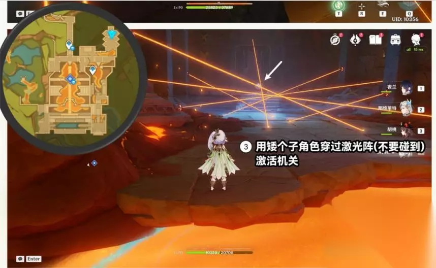 ③用矮个子角色穿过激光阵(不要碰到),激活机关