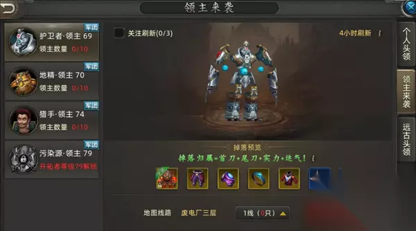 领主来袭:这个是军团玩法,说白了,就是整个军团越多的人去打奖励就越好,主要是这个领主可以分银币的,蚊子腿也是肉,跟着军团大佬一起打一点都不累,运气好爆个极品装备,等于白送一样。