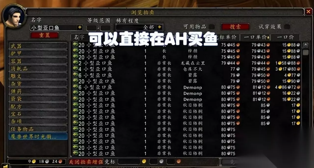 当看到小燕需要吃鱼的时候,可以观察它的DEBUFF图案,然后根据数量找到对应的鱼,去AH购买喂给小燕。