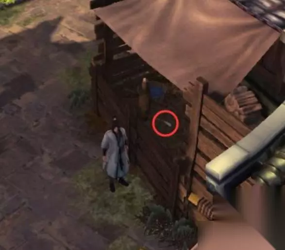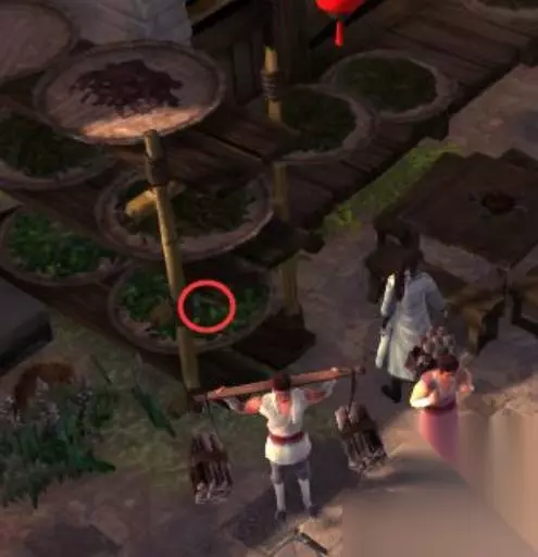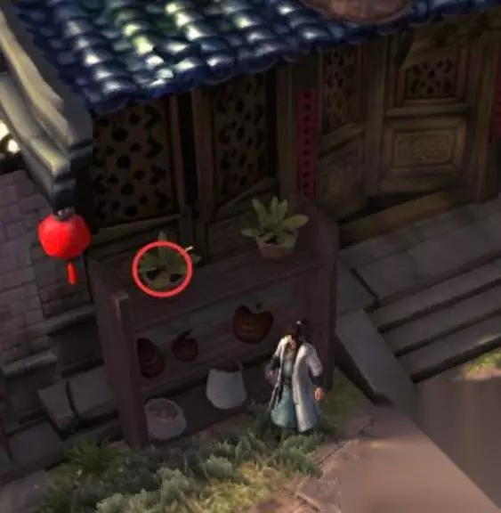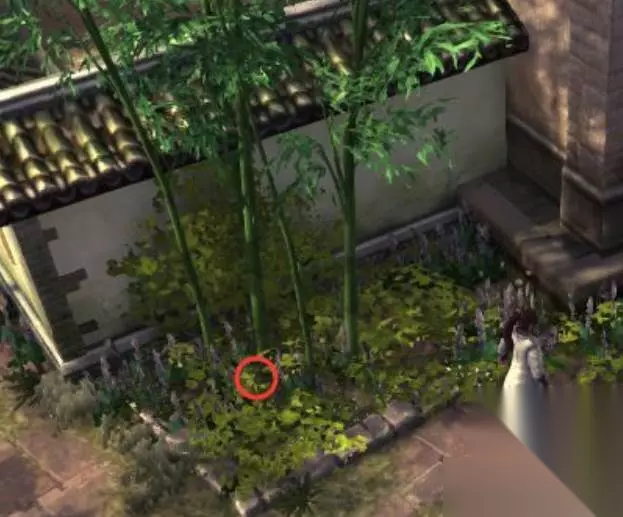 六、从衙门出来后和右侧两个老者对话,对话后往右走到墙角四根竹子的地方,调查可得珍贵草药3份。
