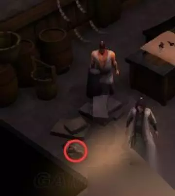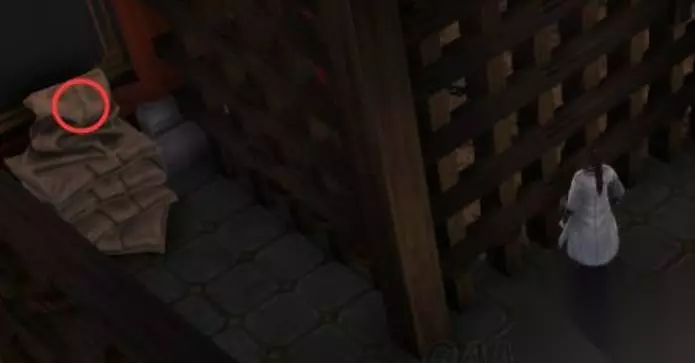 四、在衙门左侧红色租门口,右侧的桌子下面拿到稀有的矿石2个。