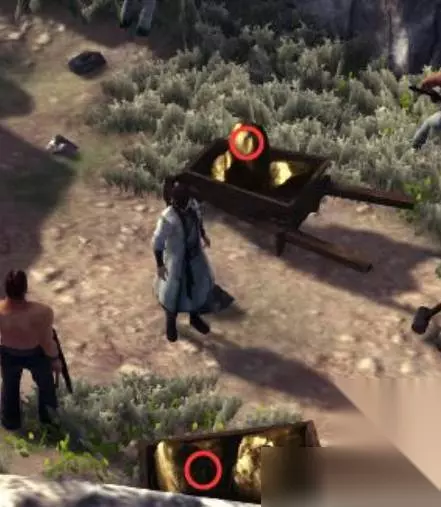二十二、拿完后往下走,在右侧过桥两车矿处分别拿到4个和2个稀有矿石。