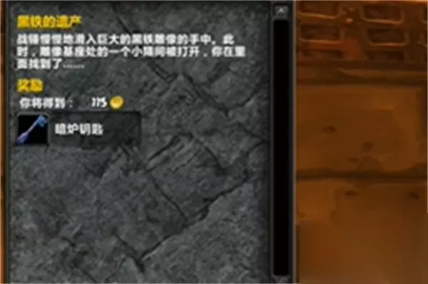 2、暗炉钥匙是黑石深渊的另一个任务的奖励,可以在副本内的暗炉宝箱中找到。