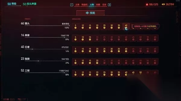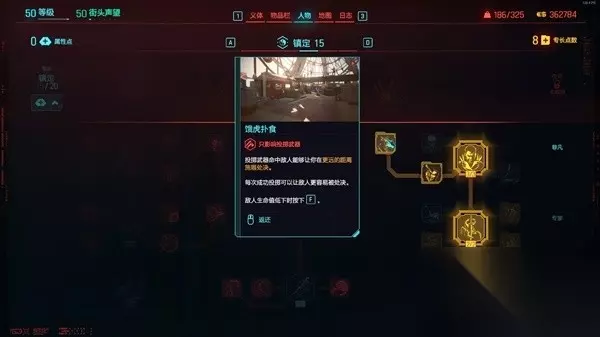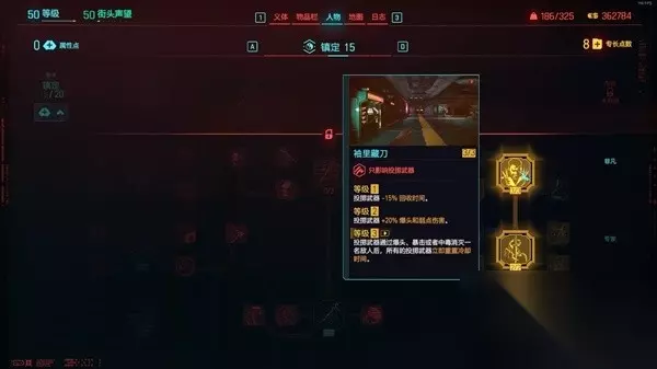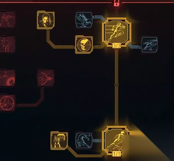 在把基础的小刀树点完之后,可以选择优先向着潜行或者正面的流派加点发展。 如果想玩潜行流,就装上光学模拟,把镇定中线点出来。