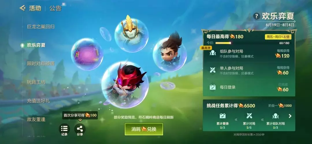 除了【欢乐弈夏】活动,在 6月19日至7月2日 期间,弈士们还能通过参与指定模式获得额外符石精粹,累计最高可达2520枚!