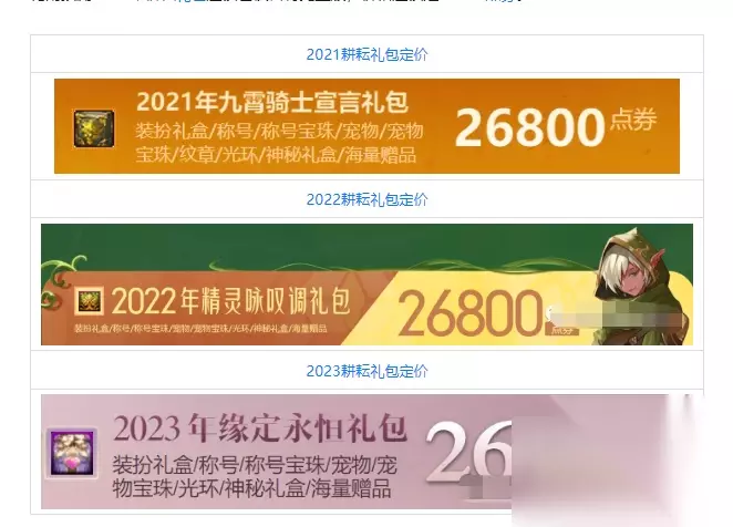 2024dnf五一套礼包多少钱? 答:进阶版礼包26800点券。 1、在2020年之前的耕耘礼包都会有两个版本,基础款和进阶版两种,价格不同可按需购买; 2、2020年及以前的耕耘礼包均分为两种,分别是26800点券价位的完整版与19800点券价位的阉割版; 3、从2021年开始无论是新春礼包还是耕耘礼包,都取消了普通版,仅保留完整版,所以只有26800点券; 4、2024年耕耘礼包应该也是只有一个完整版,售价是26800点券,折合成人民币是268元,购买礼包可获取精美道具资源。 2021年-2023年耕耘礼包售价: