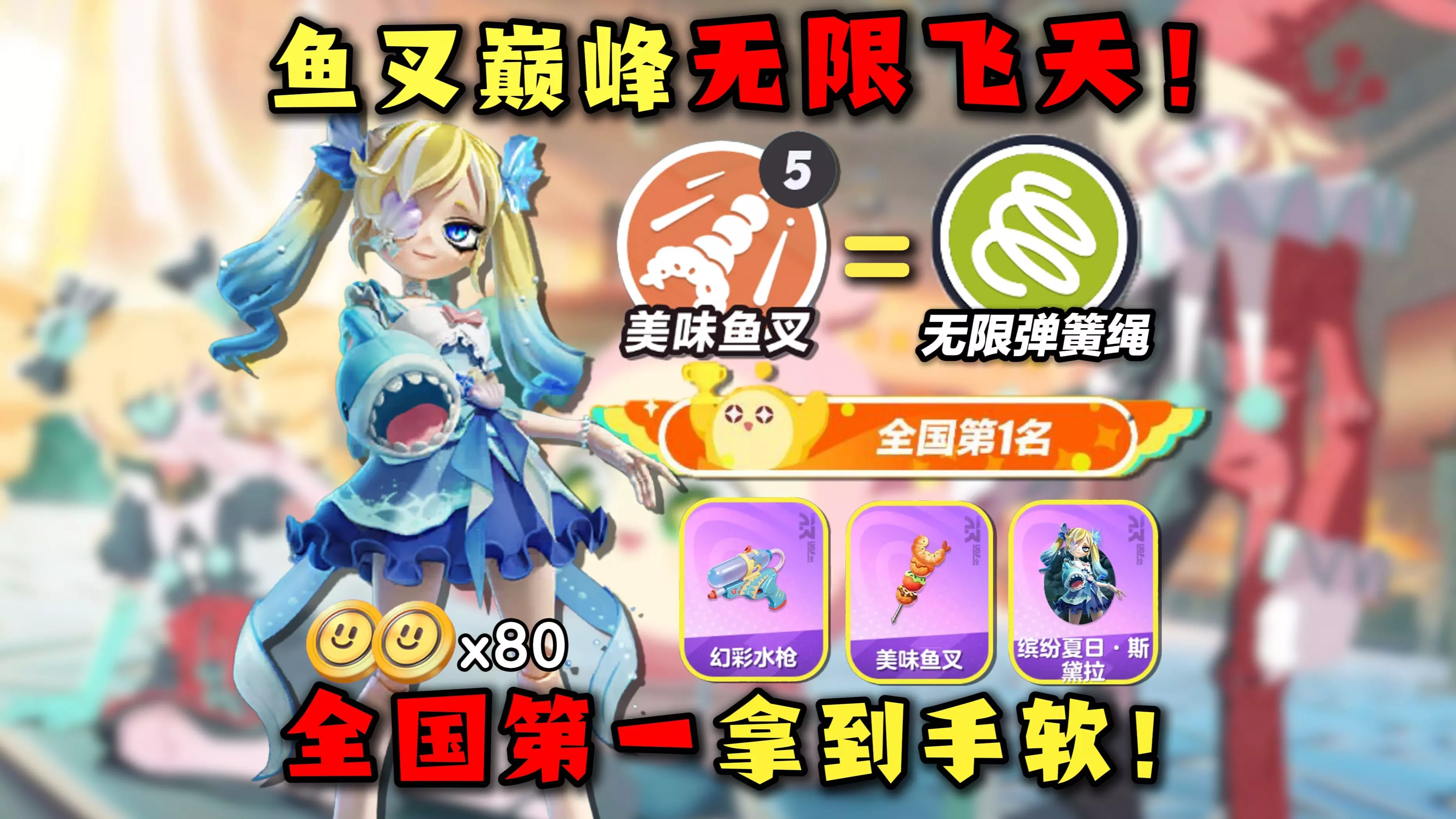回复蛋仔派对:美味鱼叉巅峰无限飞天!直接超越全国第一!哑女新皮肤抽取攻略!