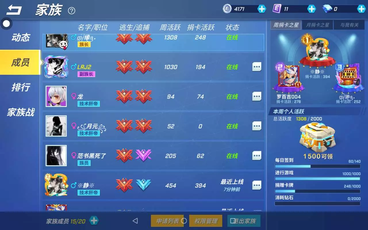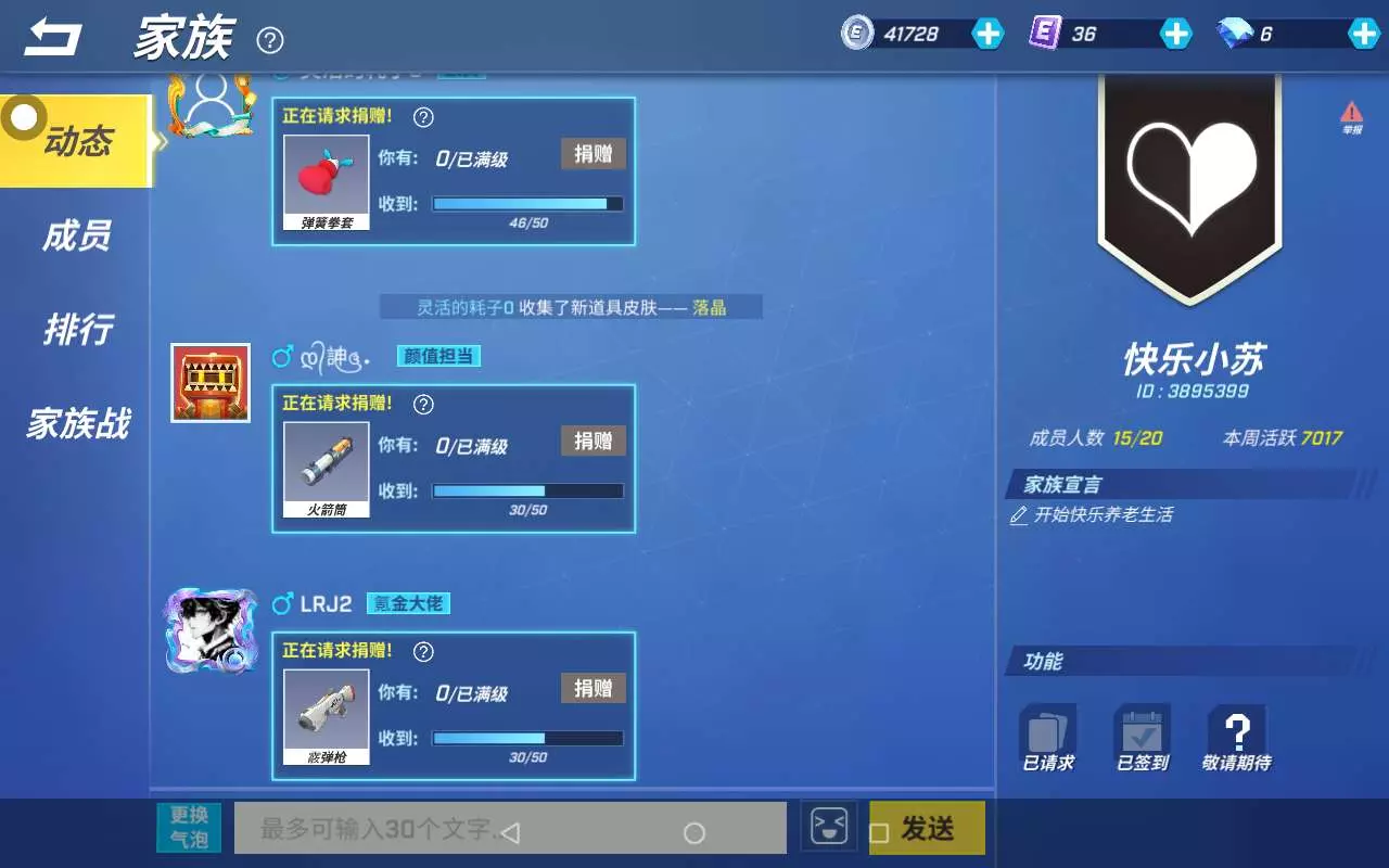 家族招人,你可以不捐卡,但我们一定会给你捐卡,这么好的家族上哪找,只有三个人的位置了,名字叫没有操作
