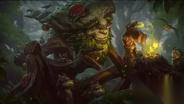 一个小树的形状,其中被动技能,让他不会攻击非史诗的野怪,点击野怪,会出现在X秒内生长的小树林,并且每个小树林消耗其一定生命和魔法值。 当小树林完全成长后,会让野怪重返自由,