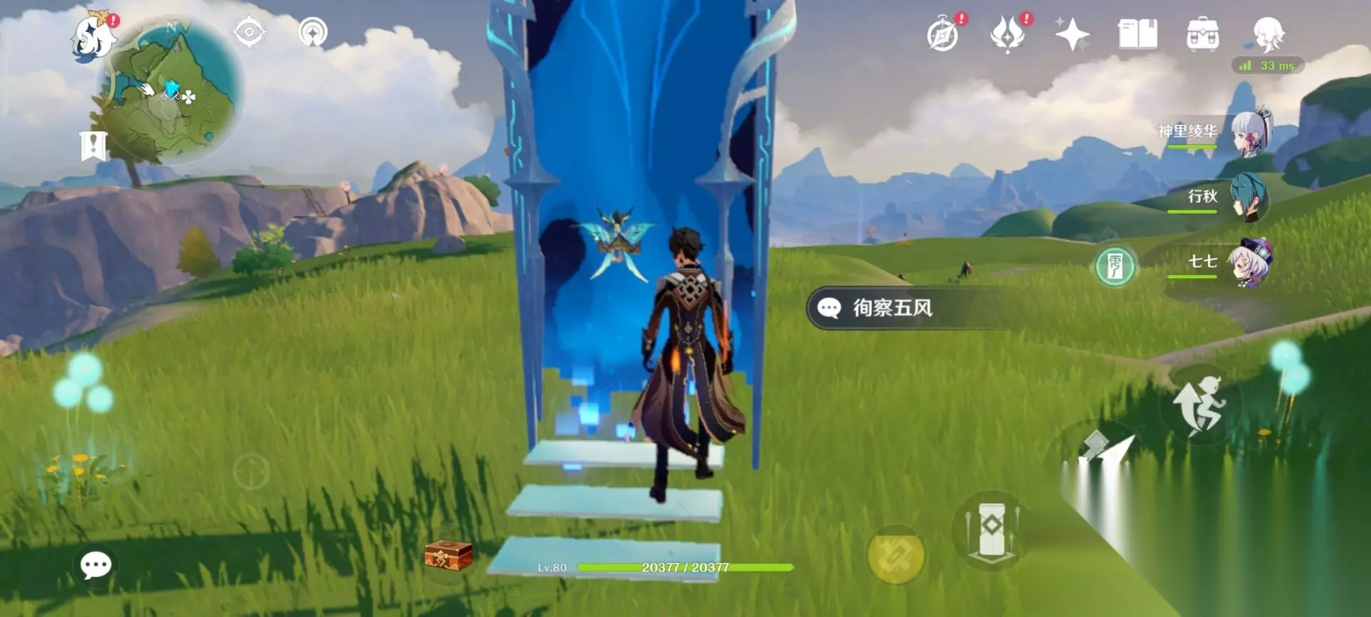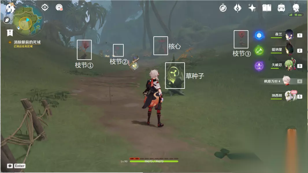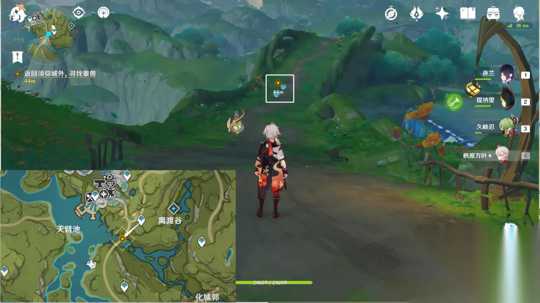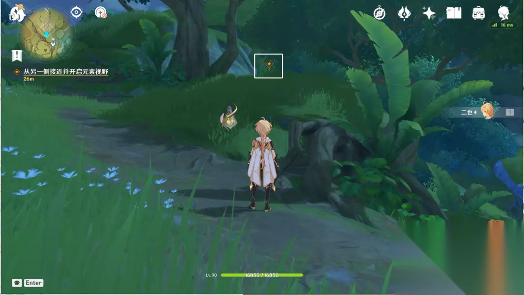 9.从另一侧接近并开启元素视野 往地图的北方向走,与纳西妲对话