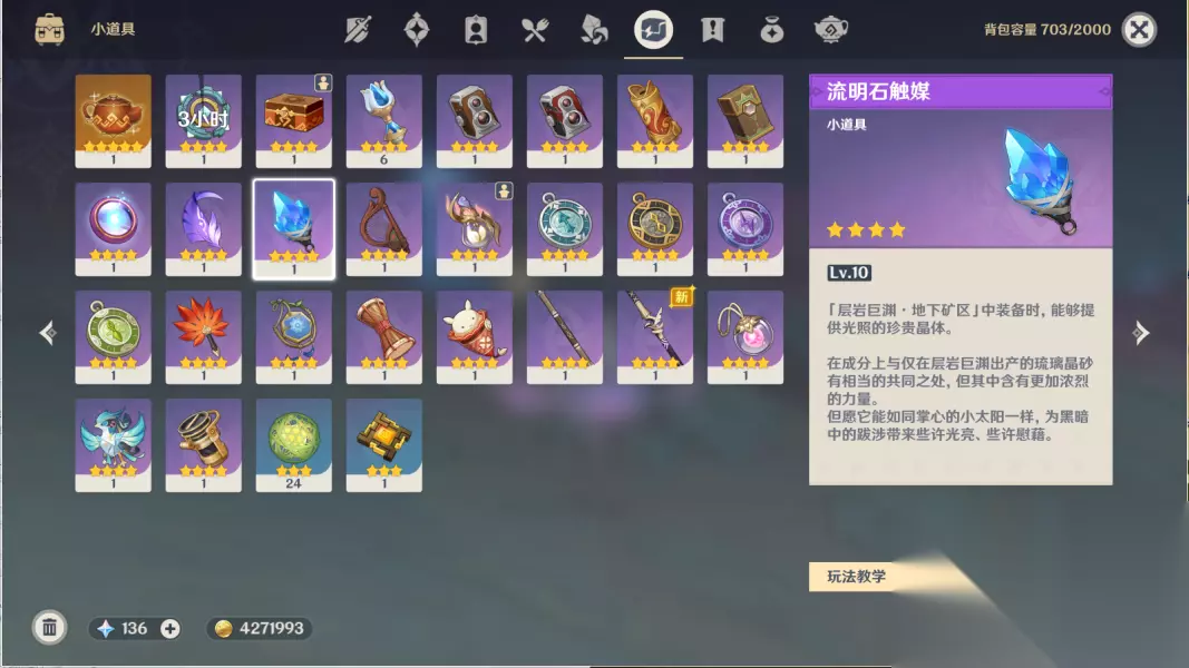 打开背包,装备流明石触媒