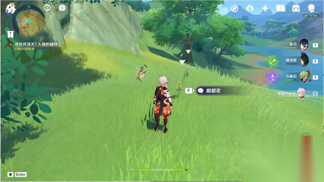 12.寻找并消灭「入侵的植物」 往地图的西北方向走,前往山坡山 ▶采摘甜甜花,清理2个骗骗花;