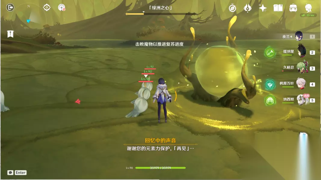 7.步入中央 进入秘境,往场地中间走,与纳西妲、蕈兽对话