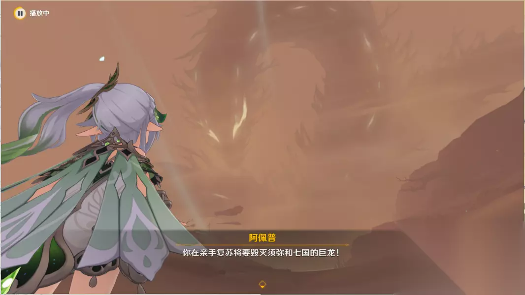 3.前往结局所在之地 往地图的西方向飞,与纳西妲、蕈兽对话