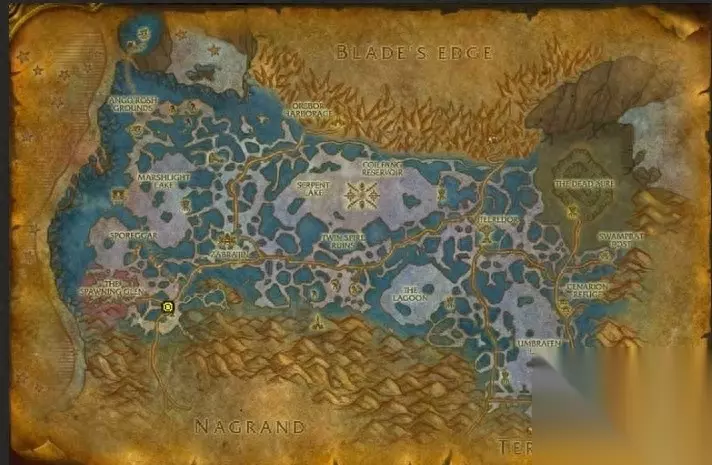 部落要在地狱火半岛做一系列任务开启声望,起始NPC叫纳兹格雷尔(刺客任务)位置如下图