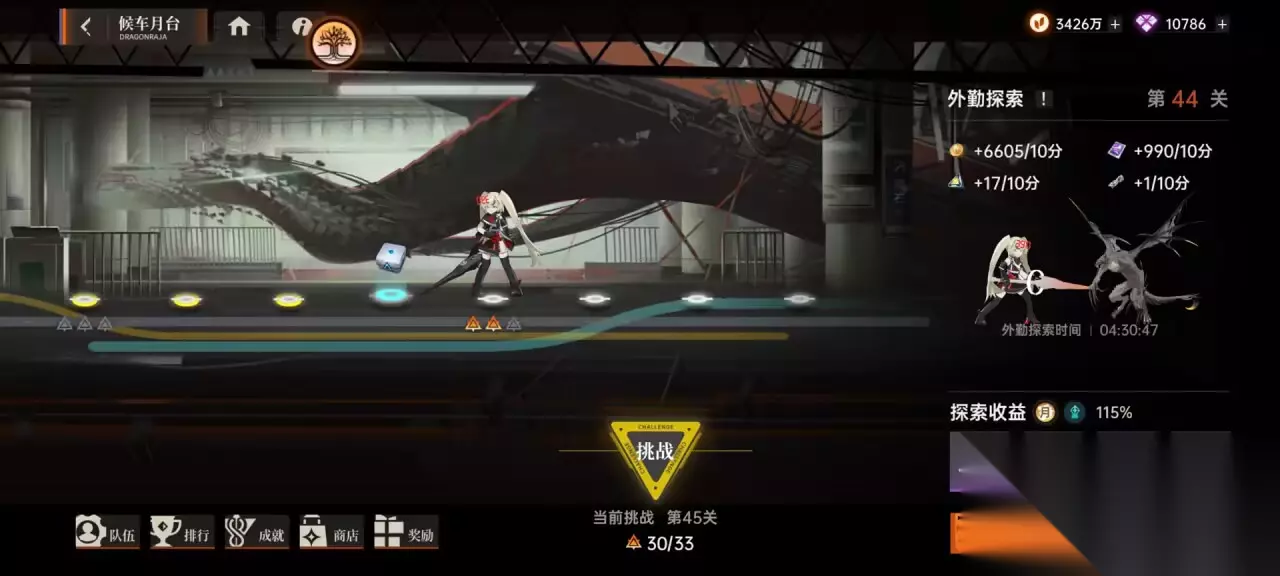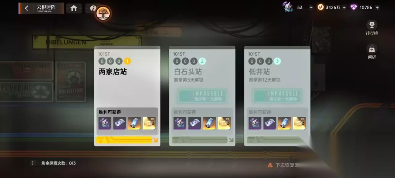 3. 遗迹探险 该副本是获取金色龙文的重要途径,这个副本类似于派遣角色然后过一段时间可以获得奖励,但是,这里面可获得的战利品是与派遣的所有角色的总星级挂钩的,也就是说,总星级越高,可能获得的奖励就越好。所以,我们尽量使用BOX中星级最高的几个角色出战,由于这个副本有四个小关卡,每个关卡派遣出角色后都要等十分钟左右才能获取奖励,时间足够的话可以,等第一次派遣完再用高星角色派遣第二个。(角色不可以同时派遣)