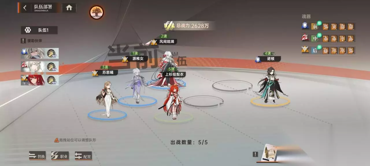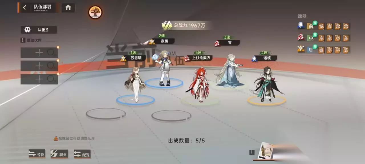 该站位主要是由于游戏内一个叫魂器的功能,对不同位置的角色对应的加成属性不同,比如对中排角色加的就是增伤之类的。
