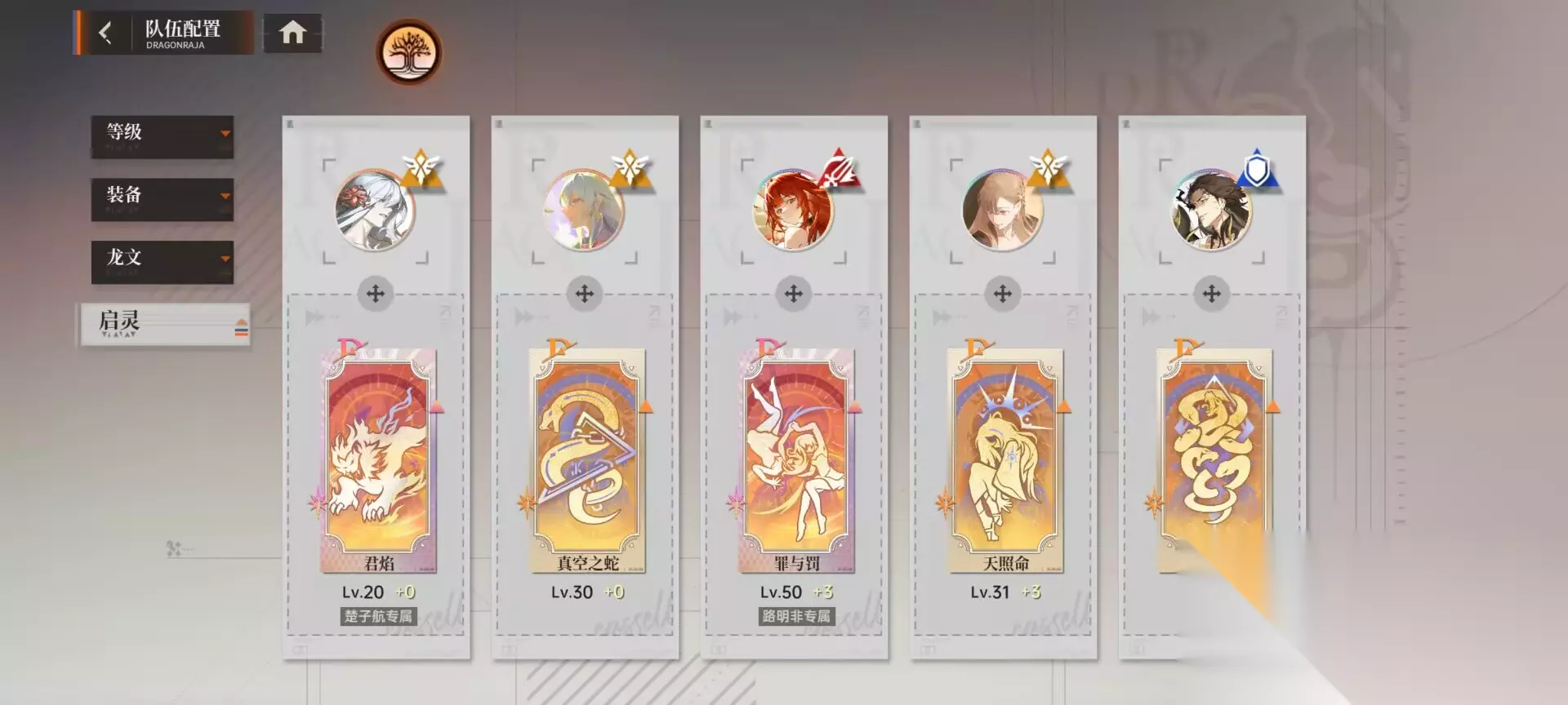 4. 启灵 也是看属性,输出的就给主c防御的就给前排