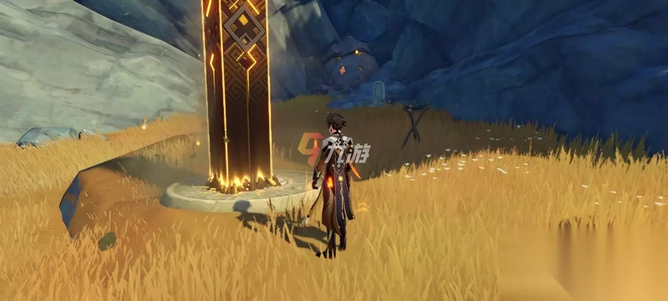 接着大家从岩中幽谷往外走,会在不远处看见一个岩元素石头,使用重剑角色来攻击它触发共振,接着回到岩中幽谷就可以看见秘境出来啦。
