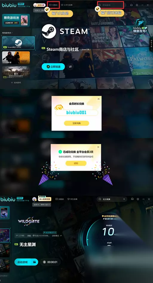 但需要玩家注意的是,该款游戏作品的体量非常之大,所以玩家不仅要有足够的内存空间,并且还要保证稳定的网络运行,这样才能够解锁流畅的游戏体验,大家可以下载一个游戏加速器,更便于游戏体验,比较推荐的的是biubiu加速器。萌新完成注册,可免费解锁24小时加速时长,使用biubiu001兑换码,再换三天,免费加速时长96小时任你体验。