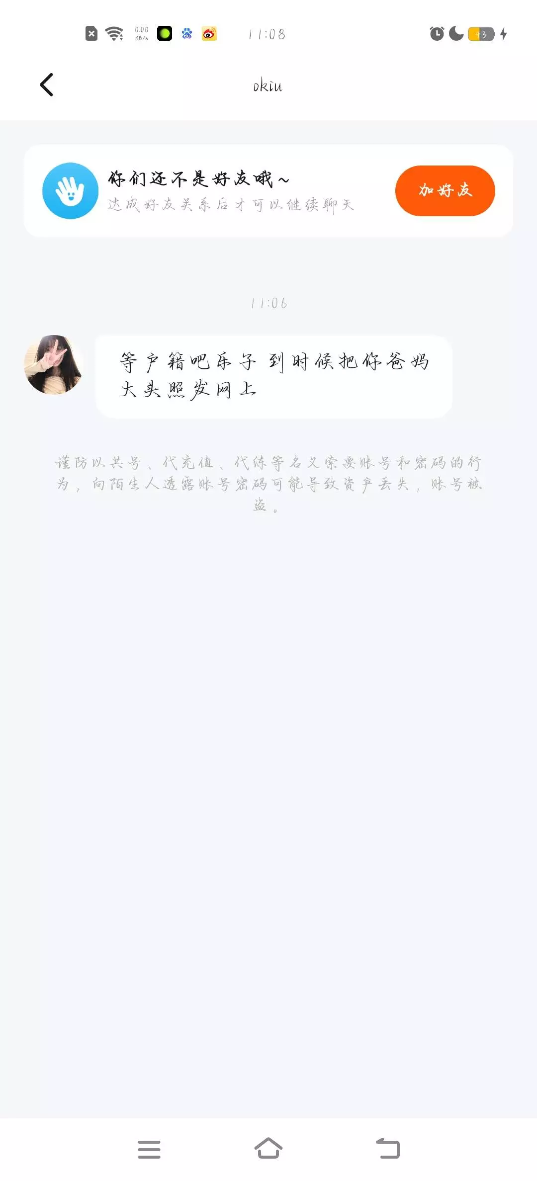 不是这人,没事吧? 他先说我和我幼稚,然后在公屏那里骂我俩 还搁那里装富婆 帮举报一下谢谢