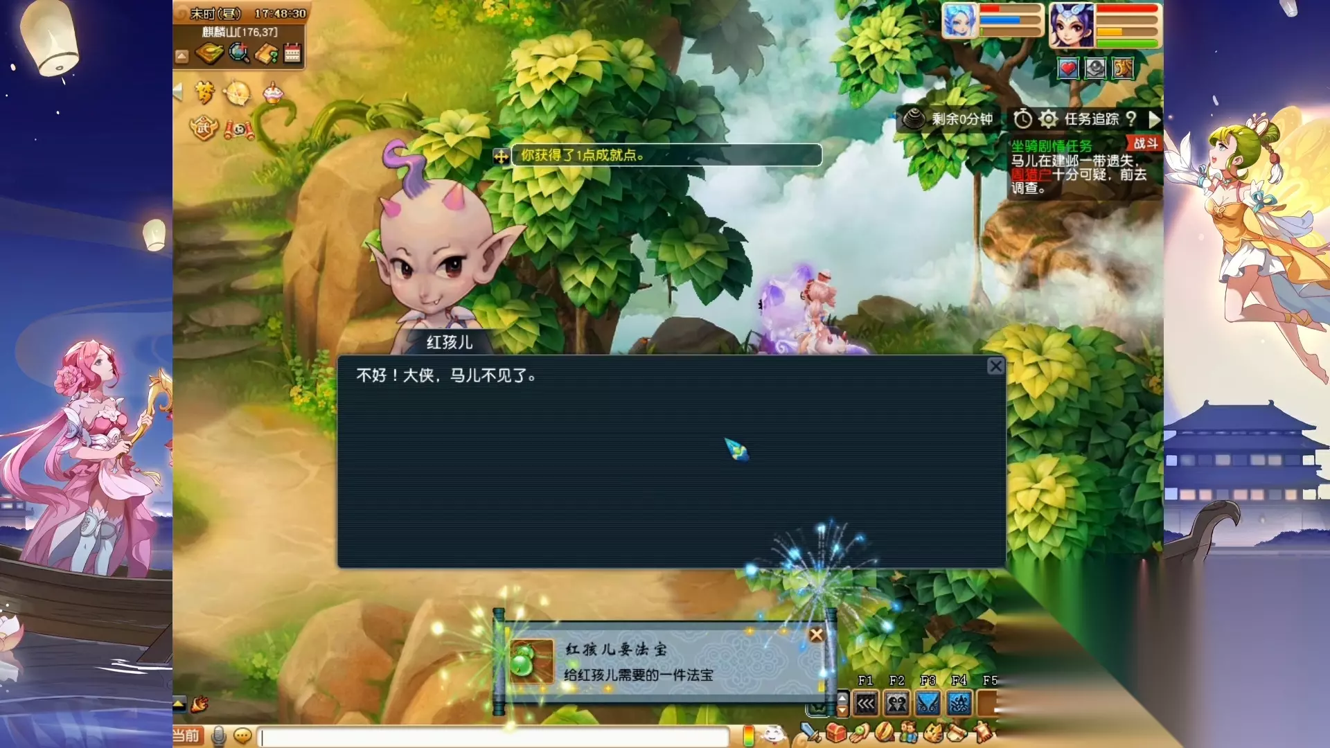 蜃妖元神跟我要了十香返生丸,我想飞到长安买,结果系统提示,该场景不能以这种方式离开,我逛了半天,都没有找到出口,问了大神才知道,点蜃妖元神就能传送出去,哎,我太蠢了!接下来,狮驼岭的三大王跟我要了地狱战神,牛魔王跟我要了家具,红孩儿跟我要了法宝金钱镖,不得不说,这任务真费钱啊!