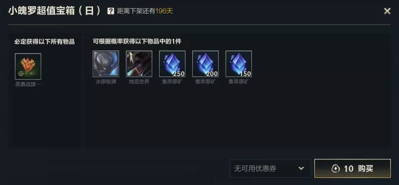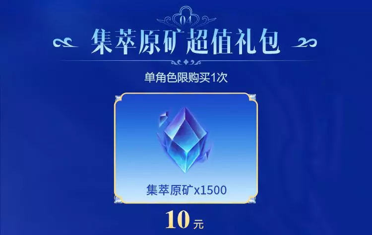 集萃原矿超值礼包,售价10元,可获得集萃原矿*1500,单角色(单区游戏角色)限购买1次。
