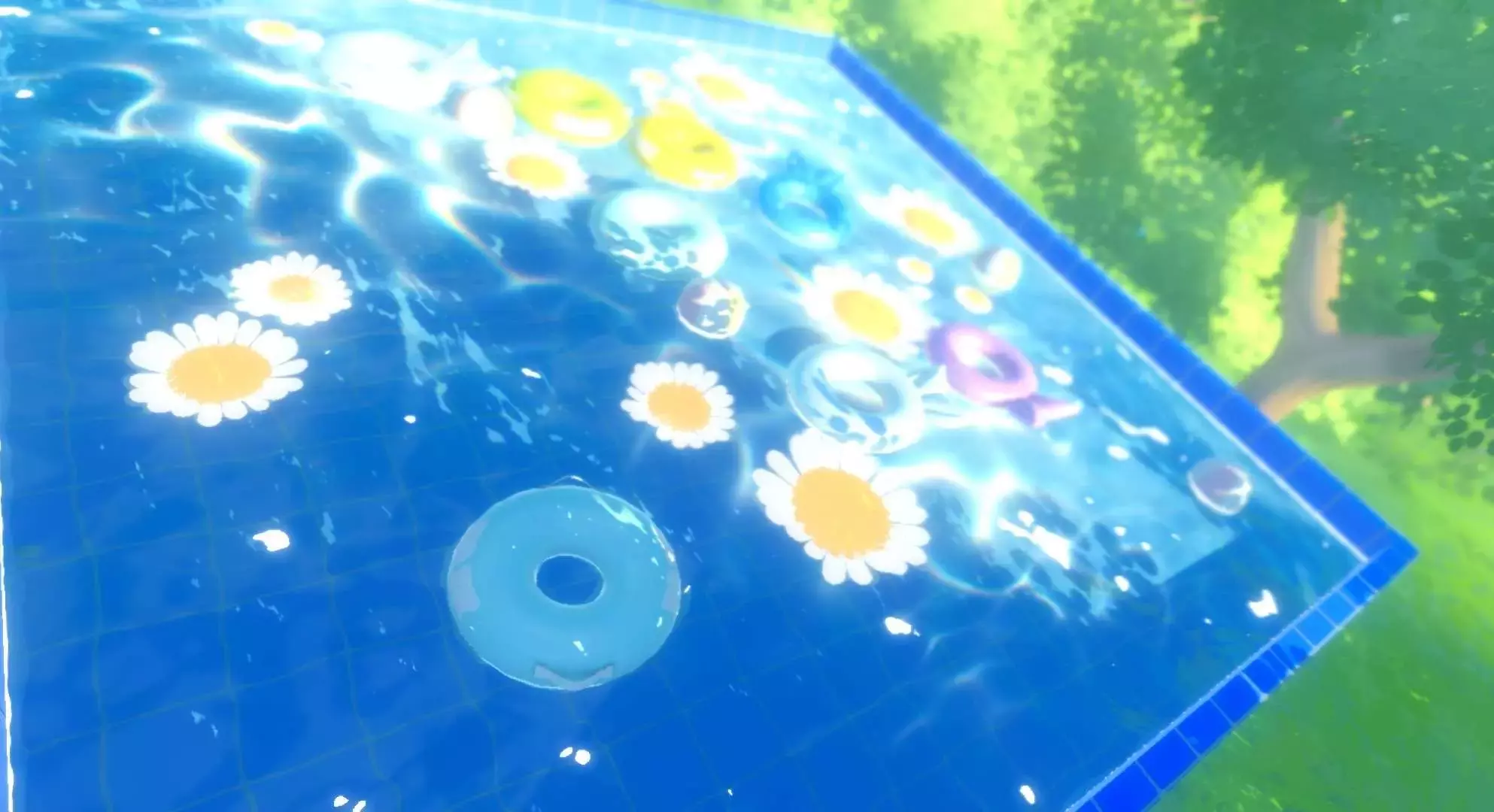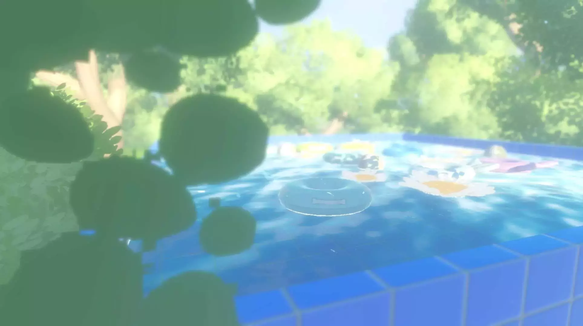 泳池在树林的深处,也算是一种小惊喜啦,大家快去探险,这个泳池看一看能不能找得到呢?非常的好玩呀!泳池上还有游泳圈和菊花,像是布满了菊花的香味,还可以躺在游泳圈上晒太阳哦~