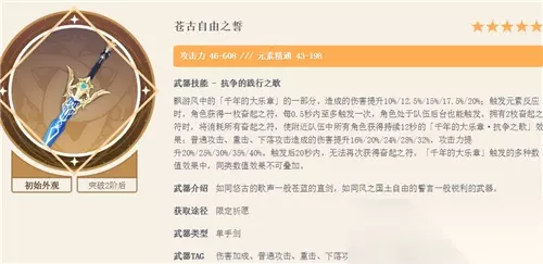 原神万叶五星武器推荐排行,原神万叶用什么武器好?万叶即将复刻,那么万叶的武器武器该怎么选择呢?大多都是用的四星铁蜂刺,下面就推荐一下适合万叶的五星武器。 原神万叶五星武器推荐 NO.1:苍古自由之誓