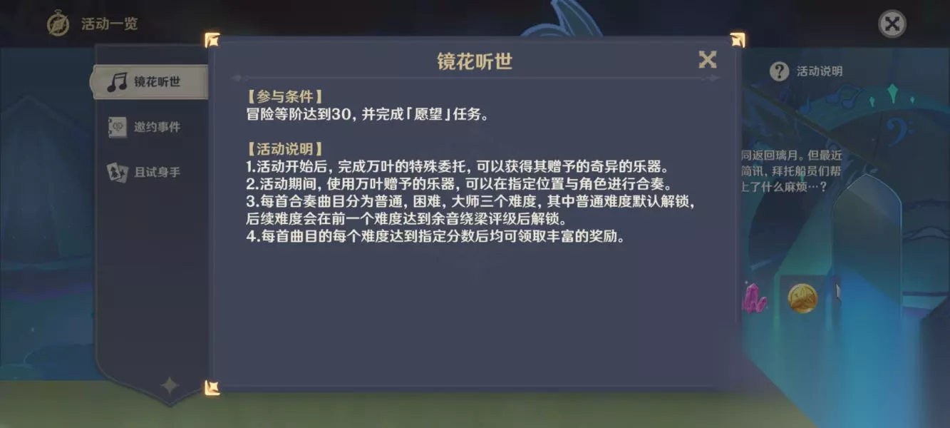 在璃月城内,玩家需要前往不同的区域寻找线索,首先可以前往璃月塔,与塔内的NPC对话并完成相关挑战,以获取第一个线索,玩家还可以前往璃月湖畔、璃月山脚等区域,寻找隐藏的线索和宝箱。 2、璃月岛外 除了璃月城内,玩家还需要前往璃月岛外的不同地点寻找线索,在翠黛山区域,玩家可以与山上的NPC对话并完成相关挑战,以获取更多线索,在璃月海滩、风花谷等区域也有隐藏的线索和宝箱等待玩家发现。 3、星罗城及周边 当玩家完成璃月地区的任务后,需要前往星罗城及其周边地区继续寻找线索,在星罗城内,玩家可以与NPC对话并完成相关挑战,以获取更多关于任务的线索,在星罗城周边的不同区域也有隐藏的线索和宝箱等待玩家发现。 如何找到所有任务地点 1、利用游戏地图 在游戏中,地图是玩家寻找任务地点的关键工具,玩家可以通过游戏地图查看各个区域的名称和位置,以及隐藏的线索和宝箱的位置,建议玩家在游戏过程中随时查看地图,并标记出已经探索过的区域和未探索的区域。 2、与NPC对话 与NPC对话是获取任务线索和地点的重要途径,在游戏中,许多NPC都会提供有关任务的线索和提示,因此建议玩家在游戏过程中与各个区域的NPC进行对话,以获取更多关于任务的信息。 3、完成相关挑战 在游戏中,完成相关挑战也是获取任务线索和地点的重要方式,在璃月塔和翠黛山等区域,玩家需要完成特定的挑战才能获取线索,建议玩家在游戏过程中积极完成相关挑战,以获取更多关于任务的信息。 任务完成奖励 完成镜花听世愿望任务可以获得丰厚的奖励,包括游戏货币、道具和装备等,完成任务还可以解锁更多的游戏内容和玩法,让玩家更好地体验游戏的乐趣。 镜花听世愿望任务是《原神》中的重要任务线,需要玩家耐心探索和寻找,通过利用游戏地图、与NPC对话和完成相关挑战等方式,玩家可以找到所有任务地点并顺利完成任务,完成任务可以获得丰厚的奖励,同时还可以解锁更多的游戏内容和玩法,希望本文的指南能够帮助您更好地完成镜花听世愿望任务。
