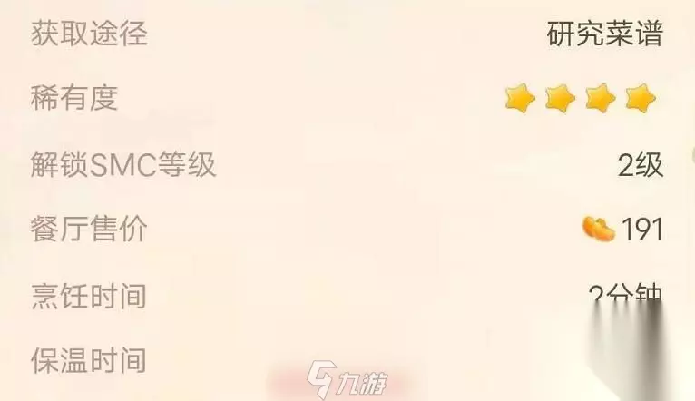 摩尔庄园草莓奇异旋风菜谱火候 1、 稀有度:4星 2、 获取途径:研究菜谱 3、 解锁等级:2级 4、 餐厅售价:191 5、 烹饪时间:中火烹饪2分钟 6、 保温时间:10分钟