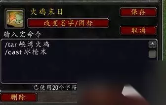 很简单,就两句命令,第一句是tar宏,选中目标,第二句是释放一个顺发的不用读条的远程技能,比如我用冰法就是冰枪术,小德就是月火术,猎人可以眼镜蛇射击等等。 只要火鸡在你的面前,按一下这个宏就会放一次技能把它秒杀掉,只要能在3分钟内杀死15只就可以拿到这个成就。