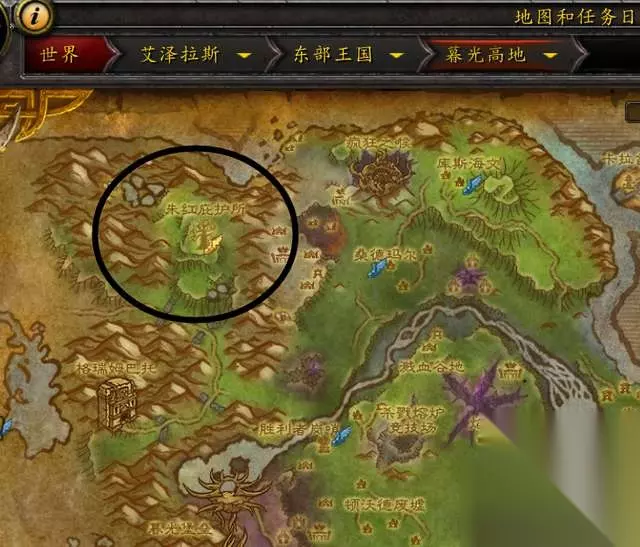 或者暮光高地的朱红庇护所附近,如下图: