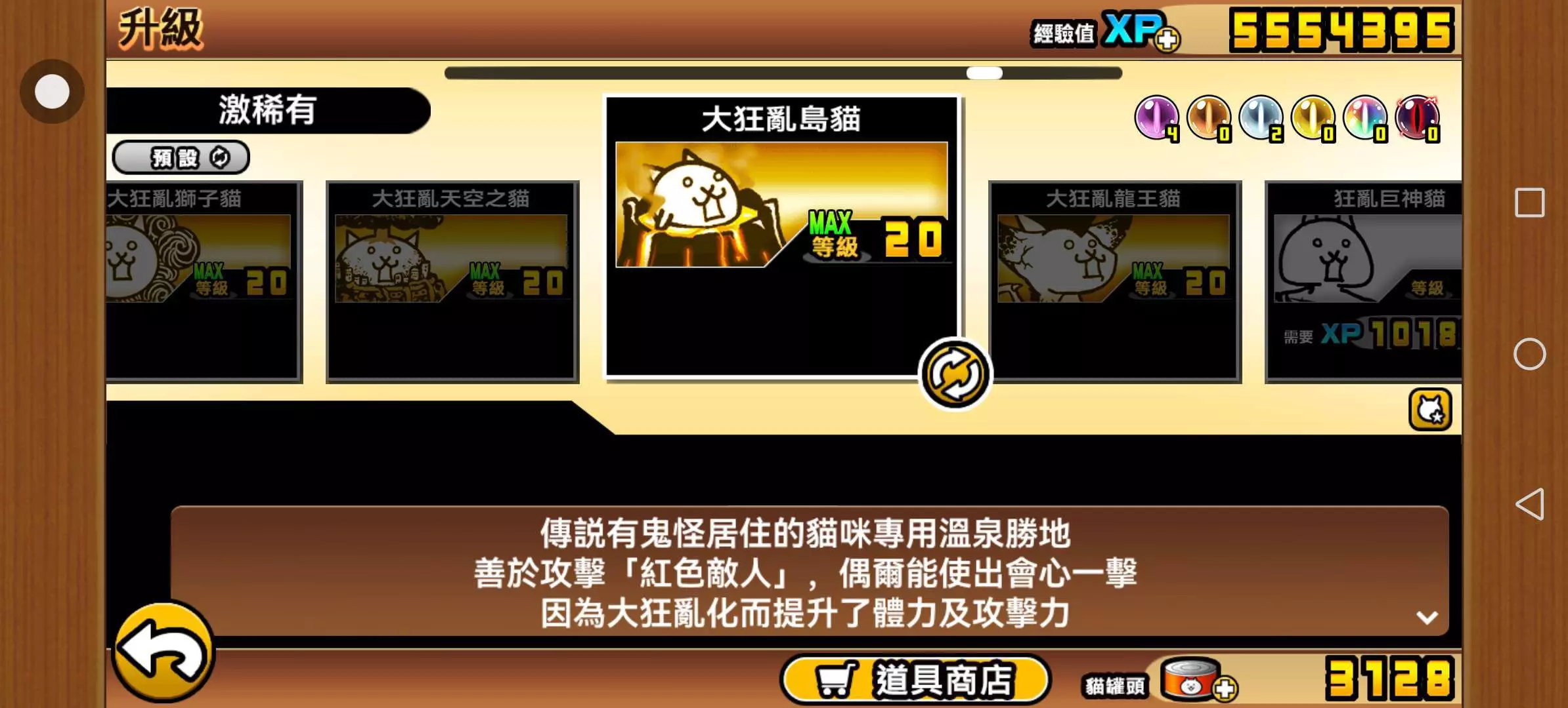 更新后如遇黑屏,退出重进即可 最新的14.2版本已经到来!乱世将至,猫猫军团重现于世,他们选择了你作为领袖,这次,猫猫军团可以拯救这个混乱的世界吗?这取决于你的智慧与勇气! ★温馨提示: 使用vpn游戏体验更佳哦 本游戏的攻略已经发布!!! ★超简单・战斗系统 编成喜欢的猫咪队伍来作战~ 还可发动猫咪炮去攻击对方城堡! ! ★超简单・养成系统 过关即可获得经验值~ 将你的猫咪角色等级升到10后,即可转职喔! ! ★超丰富・奖励系统 宝物玲珑满目~角色奇异特殊~ 超有个性的猫咪军团们等着你来哦!
