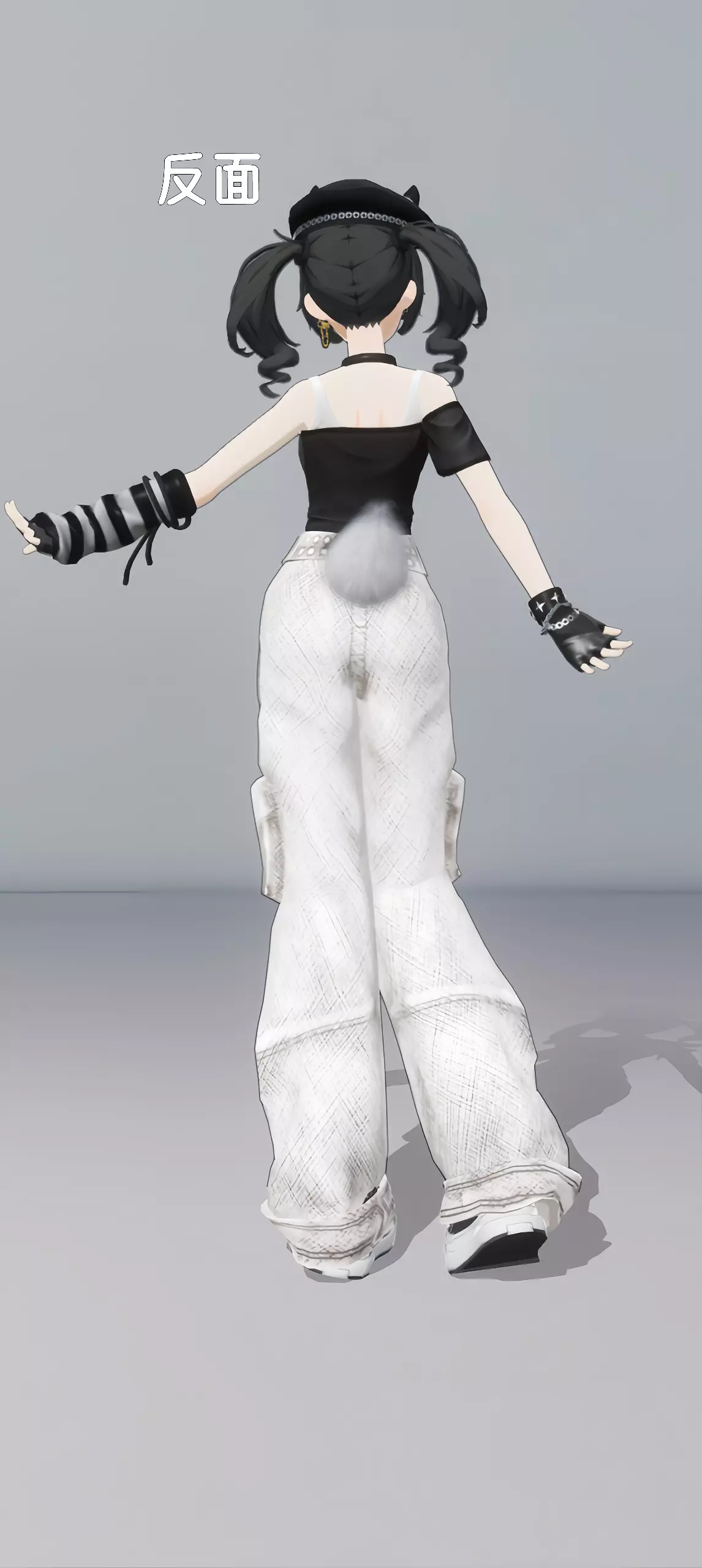 #233穿搭独家爆料 #618时尚达人争霸赛 戴猫耳帽 露肩黑上衣 搭配多口袋白工装裤 街头酷飒风拉满~ 有图正反面