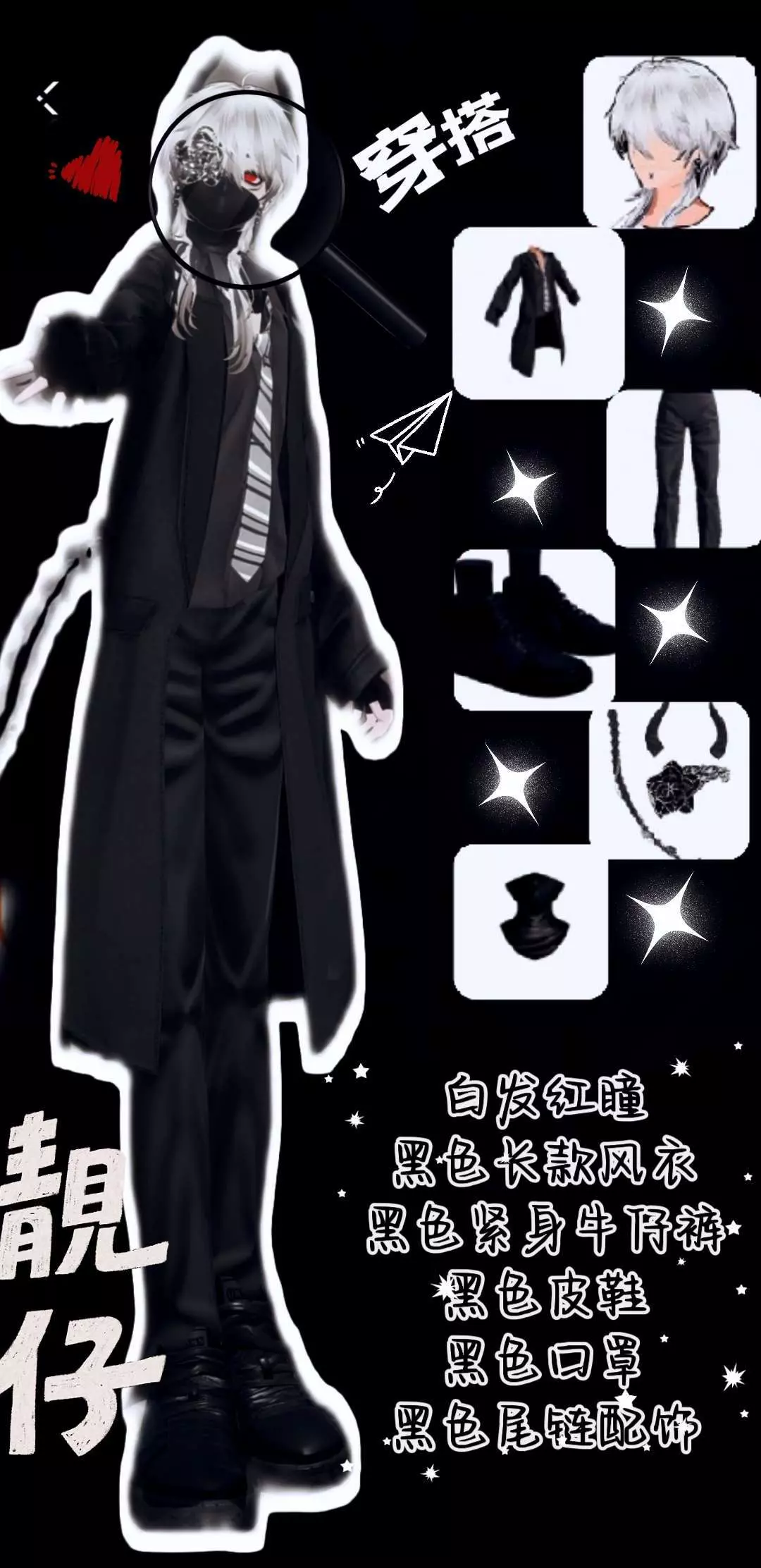 ·穿搭:白发红瞳、口罩遮脸的神秘感、长款风衣配紧身裤尽显修长身姿…