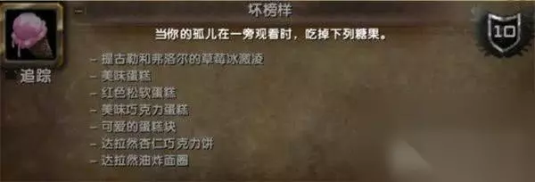 三、完成建议 建议你在召唤孤儿之前就先准备好这7种糖果,放在背包里。召唤孤儿后,依次吃掉它们。期间不要取消孤儿,不要切换地图,也不要进行会导致孤儿消失的操作。只要顺利吃完,成就立刻完成。