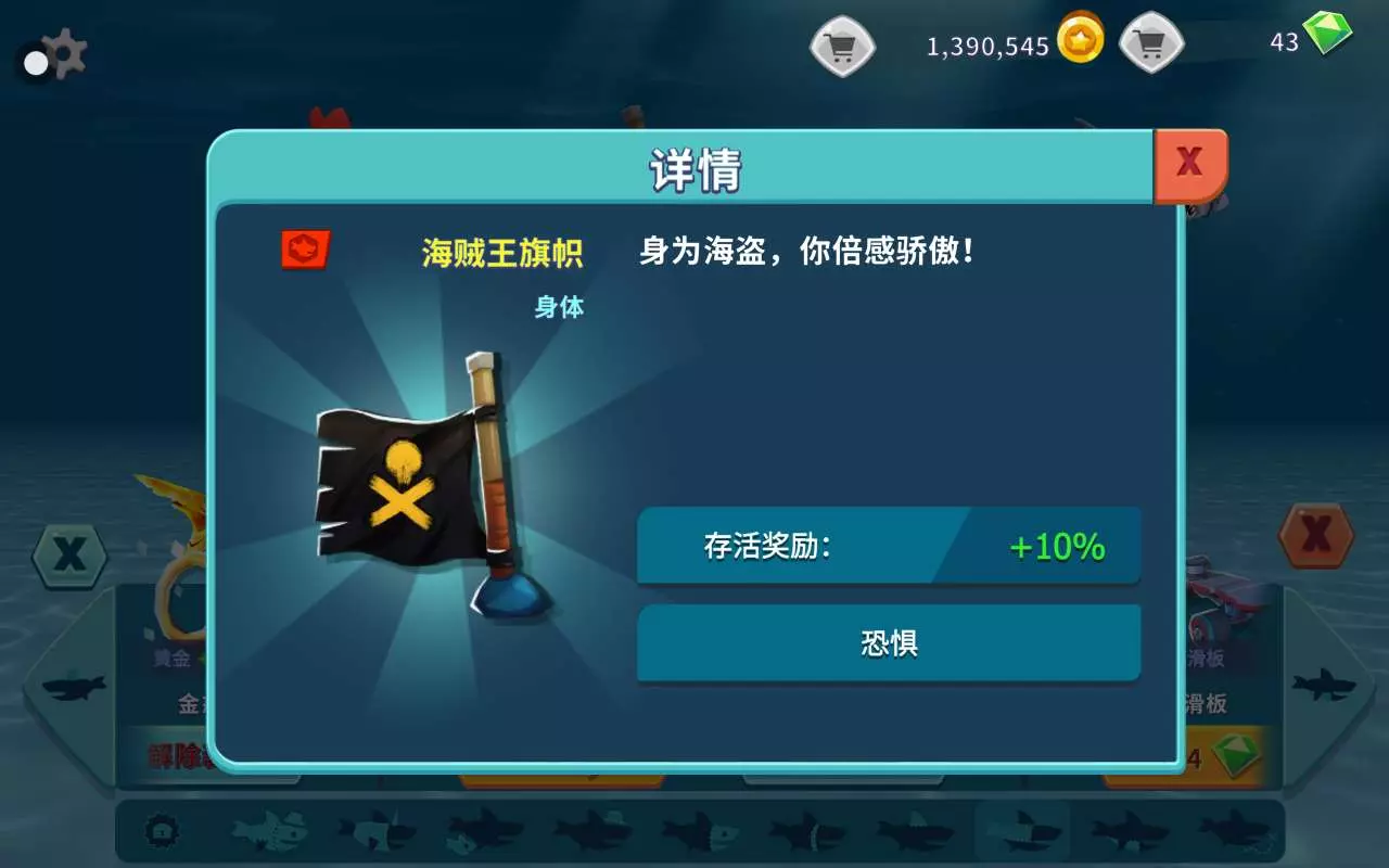 饥饿鲨的升级总是令人烦恼的,特别是看见自己被各种大鲨鱼虐,却无法战胜它们的时候,因此,在前期选择装备是10分重要的事,它相当于为你后面购买大鲨鱼铺地基,以下这几个是在饥饿鲨世界中10分实用的初级装备,1黄金三件套(初级)分别是牛仔帽,眼罩和金戒,他们能在前期为你赚到你每局结束后总收益的21%,前期鲨鱼升级很快,总会遇到金币不够的情况,有了这三个装备,你就可以在前期攒够大量的金币,甚至在后期买大鲨鱼的时候,还有额外的剩余,其影响甚至可以一直达到你购买白鲸的时候;2世界地图,对于萌新来说,一个地图总是很重要的;3海盗王旗帜,它会让周围的大鲨鱼对你有略微的恐惧,在攻击你的时候会稍微迟缓,顺利让你逃脱,也可以为你增加10%的存活奖励,这就相当于你活的越久,就会有越多的被动收入,而拥有这个旗帜之后,你甚至能在这些被动收入上增加10%!